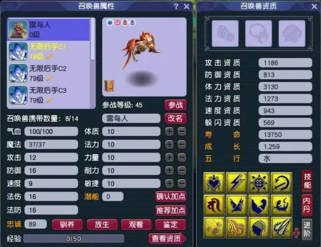 近期,一位69级大佬为提升PK召唤兽质量,准备一组“9技能雷鸟人+9技能净台吸血鬼”高端炼妖,当场拿下“13技能”成就!