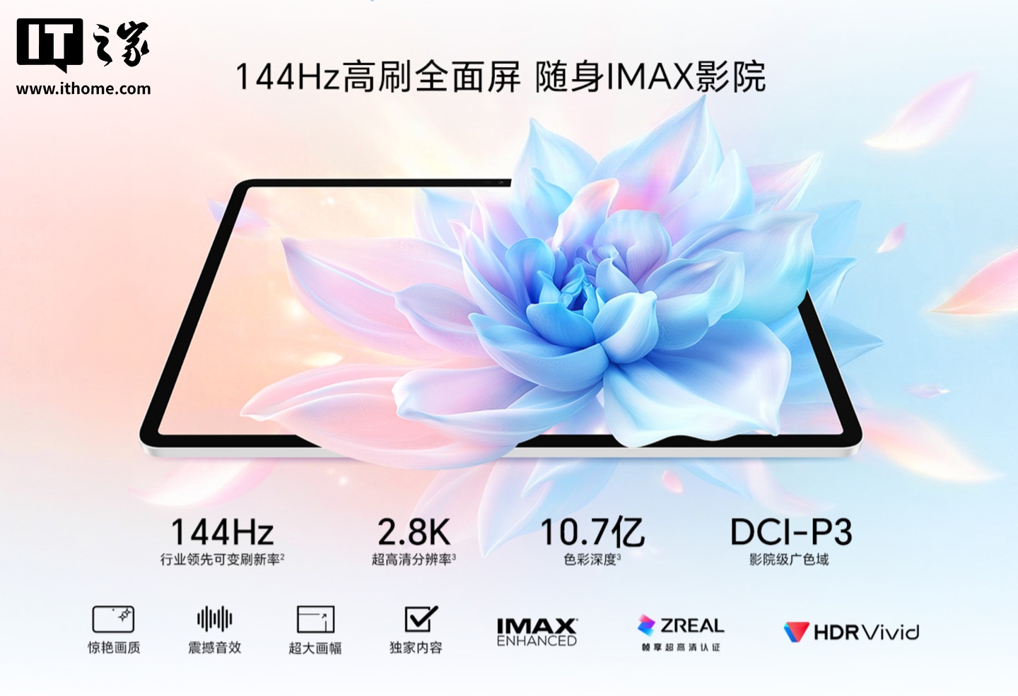 据介绍,这款平板拥有“苍山灰”“晴空蓝”两种配色可选,搭载一块 11.5 英寸 2.5K LCD 绿洲护眼屏,支持 144Hz 高刷、DCI-P3 广色域,可选柔光版,号称“观感如纸”,拥有离焦护眼、柔光护眼、硬件级低蓝光、类自然光护眼、全局 DC 调光、AI 助眠显示等特性。