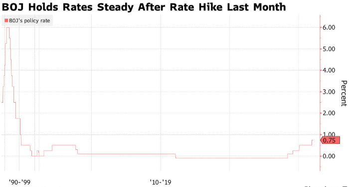 日本央行维持基准利率不变掌上策略,并上调了通胀预期,以密切关注上月加息的影响,并等待可能影响财政支出计划的提前选举结果。日本央行周五发表声明称,维持政策利率不变,仍为0.75%,与所有受访经济学家的预测一致。这意味着借贷成本处于三十年来的最高水平。理事会成员高田创投票支持再次加息,而其他理事则支持维持利率不变。