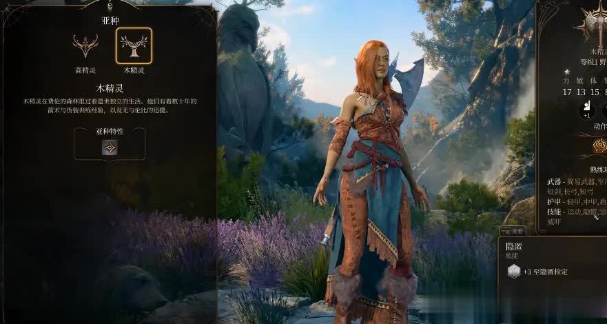 木精灵的核心优势的是轻捷步伐,基础移动速度提升至每回合10.5米(较通用速度增加1.5米)。这一加成看似细微,实战中却能发挥关键作用:追击时更快贴近目标,拉扯时轻松拉开安全距离,甚至能在敌人的攻击范围边缘灵活游走,规避伤害的同时寻找输出机会。要知道,常见法术“大步奔行”也仅能提供3米移速加成,木精灵的天生优势无需消耗法术位,性价比极高。
