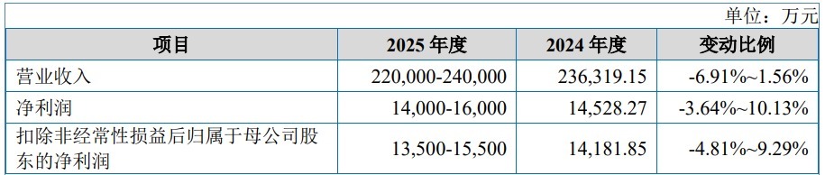 农大科技预计2025年度实现营业收入220,000.00万元至240,000.00万元,变动比例-6.91%至1.56%;实现净利润14,000万元至16,000万元,变动比例-3.64%至10.13%;预计扣除非经常性损益后归属于母公司股东的净利润13,500万元至15,500万元,变动比例-4.81%至9.29%。